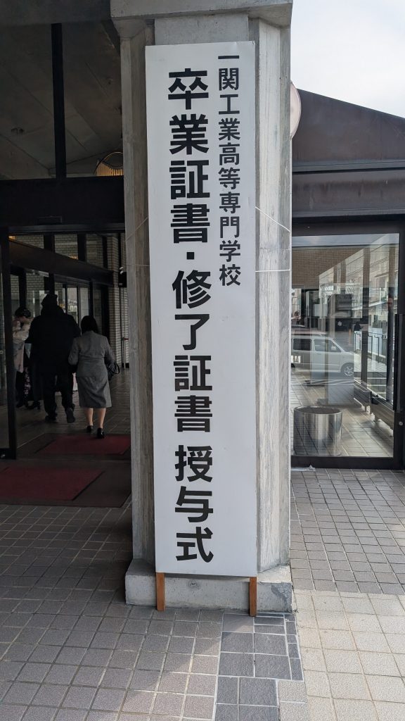 一関高専第58回卒業式と第24回修了式が3月17日一関文化センターで行われ、同窓会長が出席しました。